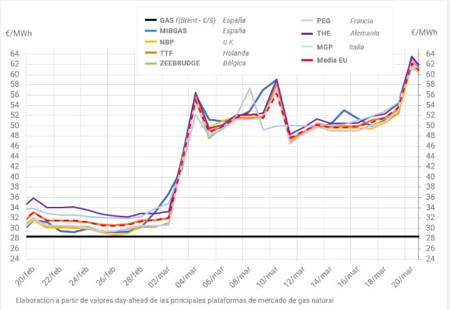 La industria manufacturera española, debido a la disminución del consumo nacional, tuvo que focalizarse en nuevos mercados exteriores y a costa de ajustes en salarios y en márgenes ha logrado mantener sus producciones. España exporta principalmente a Francia, Alemania, Italia y Reino Unido pero esta coyuntura precisa de una competitividad de los costes de producción en consonancia con los europeos y en todo ello los precios del gas juegan un papel fundamental. ¿Podrán nuestras empresas mantener sus cifras de exportación mucho más tiempo si no se acompasan los costes de gas con los del resto de sus competidores europeos? Esa es la cuestión clave en estos momentos.