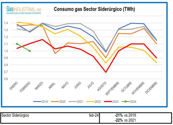 Los datos de febrero arrojan que el consumo de gas industrial, claro indicador de la actividad de la industria, ha sido un -12,7% comparado con 2019 y un -7,9% que en 2021. La industria española necesita con celeridad medidas que le permitan recuperar competitividad y ocupar en el mapa industrial europeo el lugar que le corresponde.